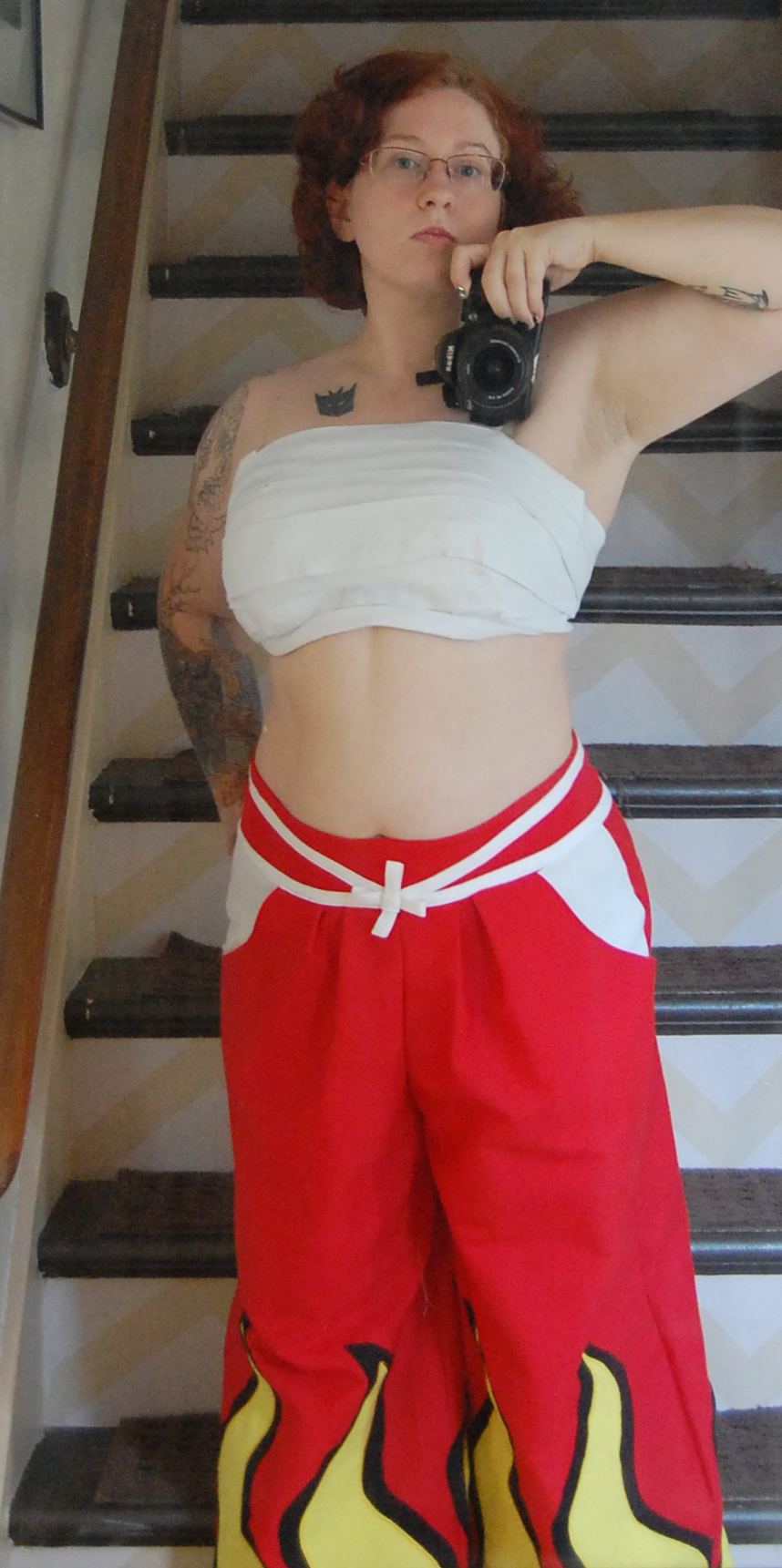 Bandage and Red Trousers outfit