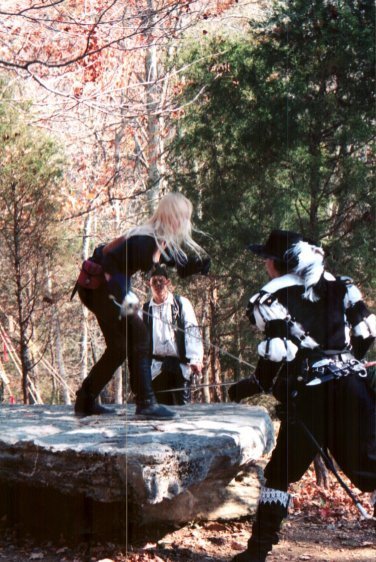 Suede leather doublet over linen shirt
