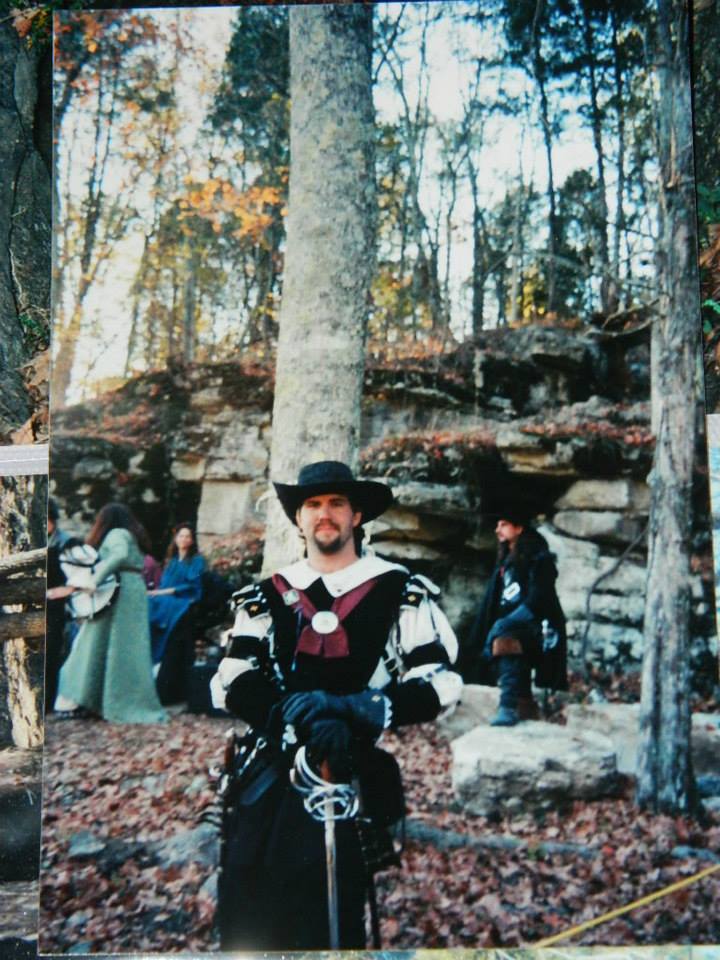 Suede leather doublet over linen shirt