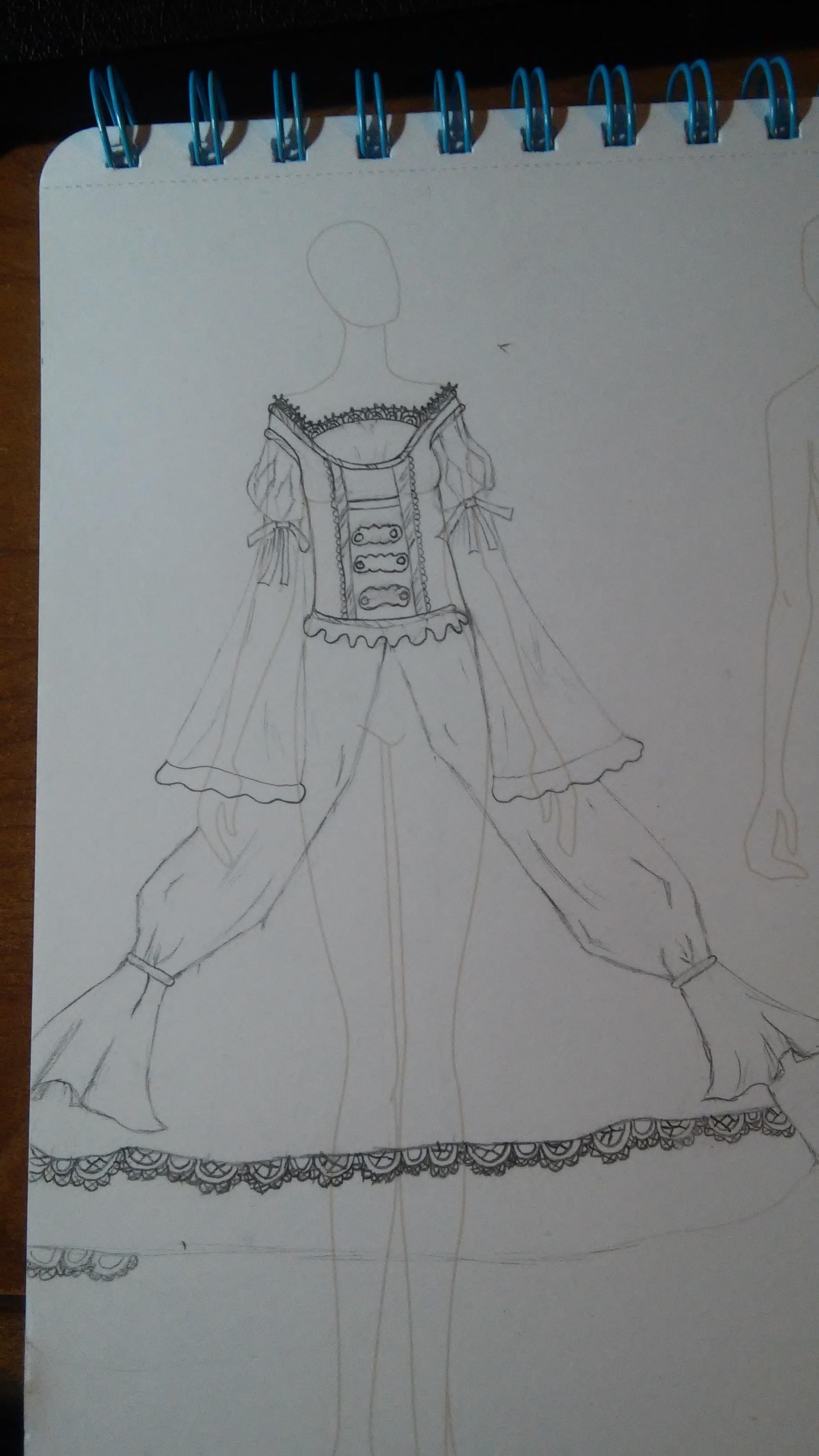 Sketching out sieglinde's outfit. The plan is to make a large petticoat with lace to add the third layer to the dress. A corset and dress with two layers and a huge bow in the back. There will be a lot of lace and beading, which I am thrilled about.