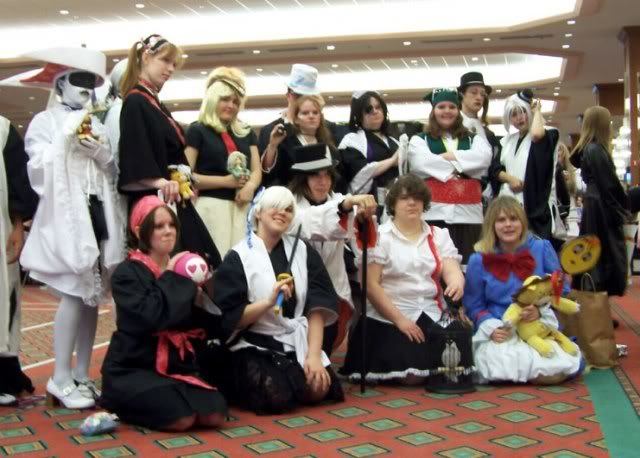 I'm the Chad here, with the parakeet. I felt like I needed a prop to be recognizable, and since he saved Shibata, and it looked kind of cute in that birdcage, I went for it. I was only so-so happy with this costume, and since learning all I have about lolita, I'd make this costume entirely differently today. But that can't take away from the memories I had with this group. It was amazing.
