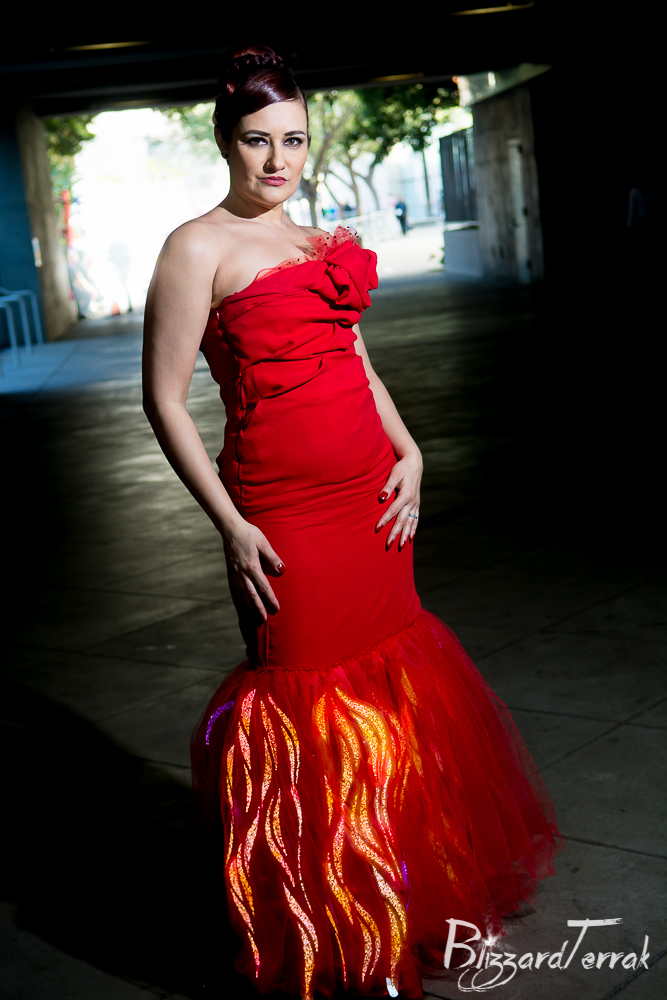 Fire Dress Katniss (Hunger Games) - WonderCon 2016 by BlizzardTerrak Photography