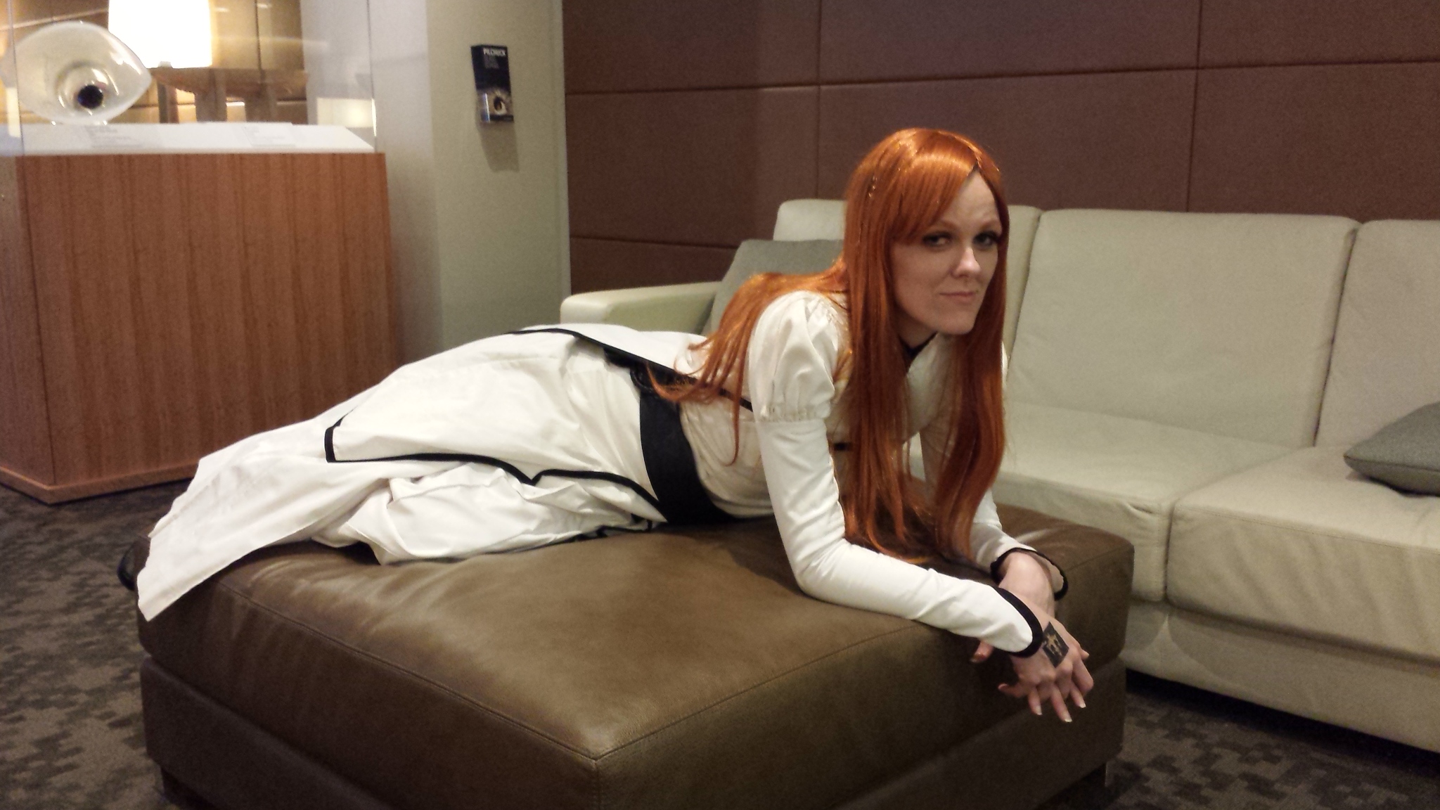 At the end of a long day at Geek Girl Con. My Dragon Age Egg Hunt temporary tattoo visible. I realized I was never wearing this again (the sleeves are too tight) and wanted pictures, so we found this corner and did I quick little camera phone photo shoot.