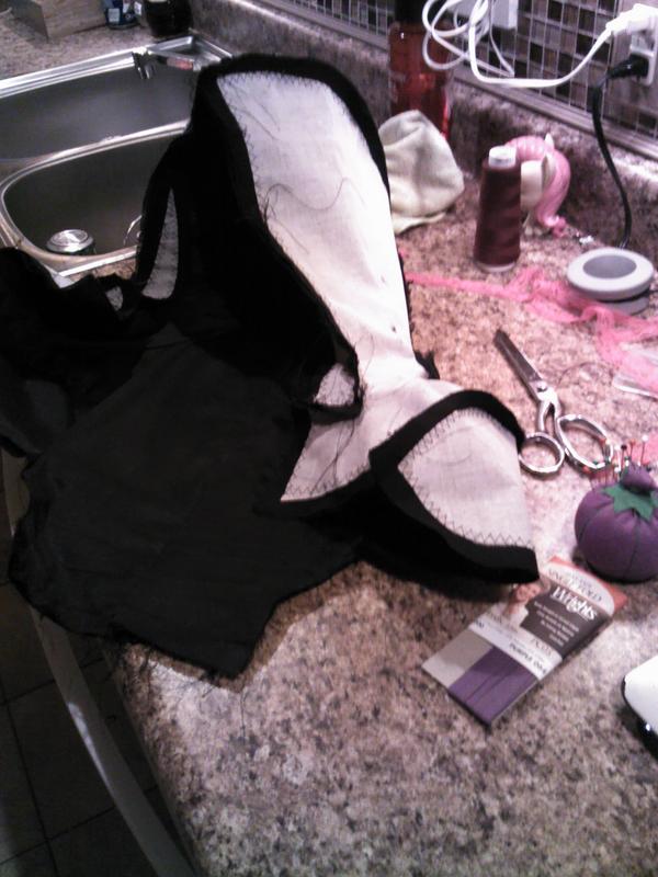 There's posh lining, duck cloth, crinoline and a layer of wool slub poplin. There's also boning and horsehair braid to help it hold it's shape.