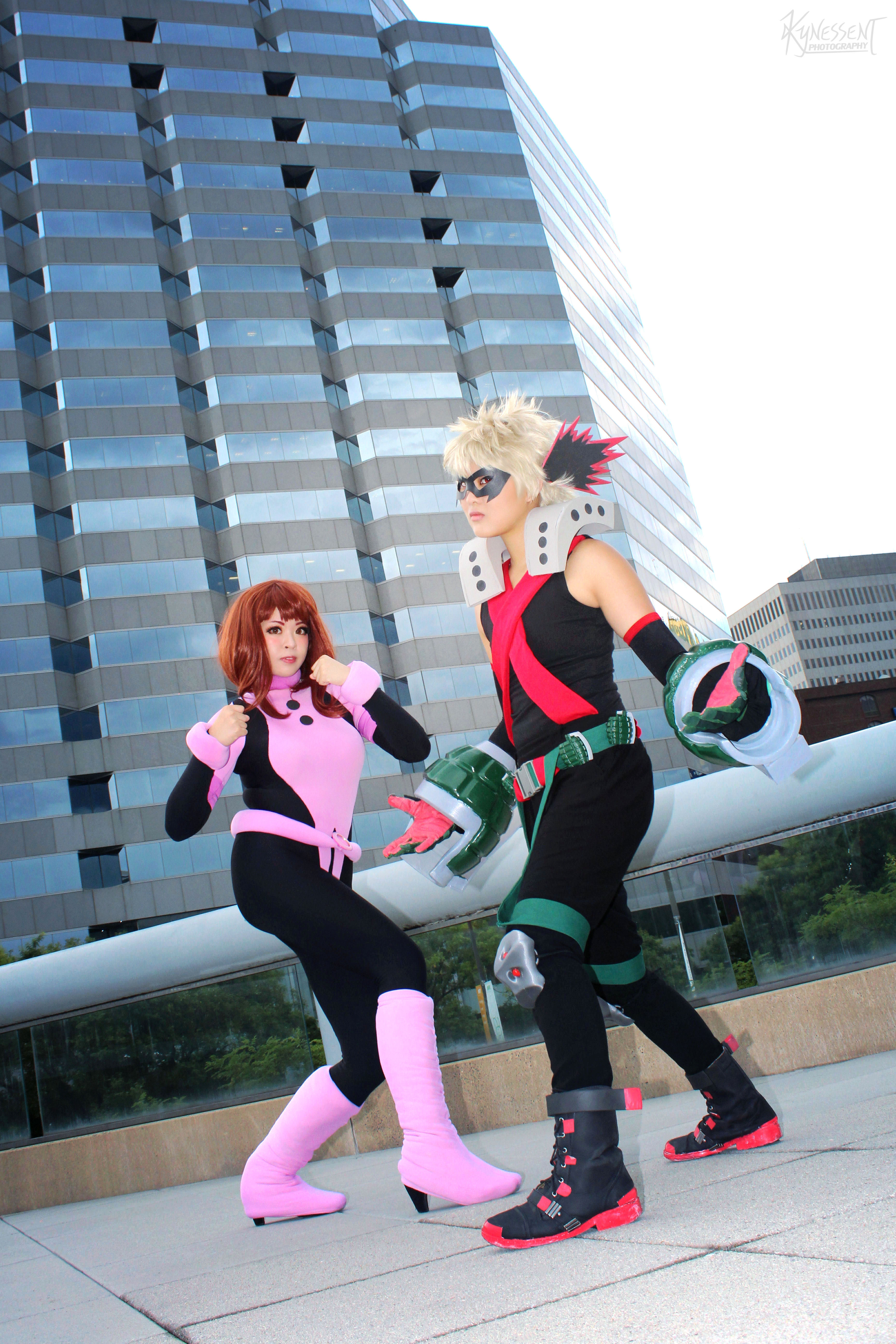 Cosplayers are Aprile & her friend (@1paprile & @yourfavouritedaddy on insta) as Bakugou and Uraraka from Boku no Hero Academia