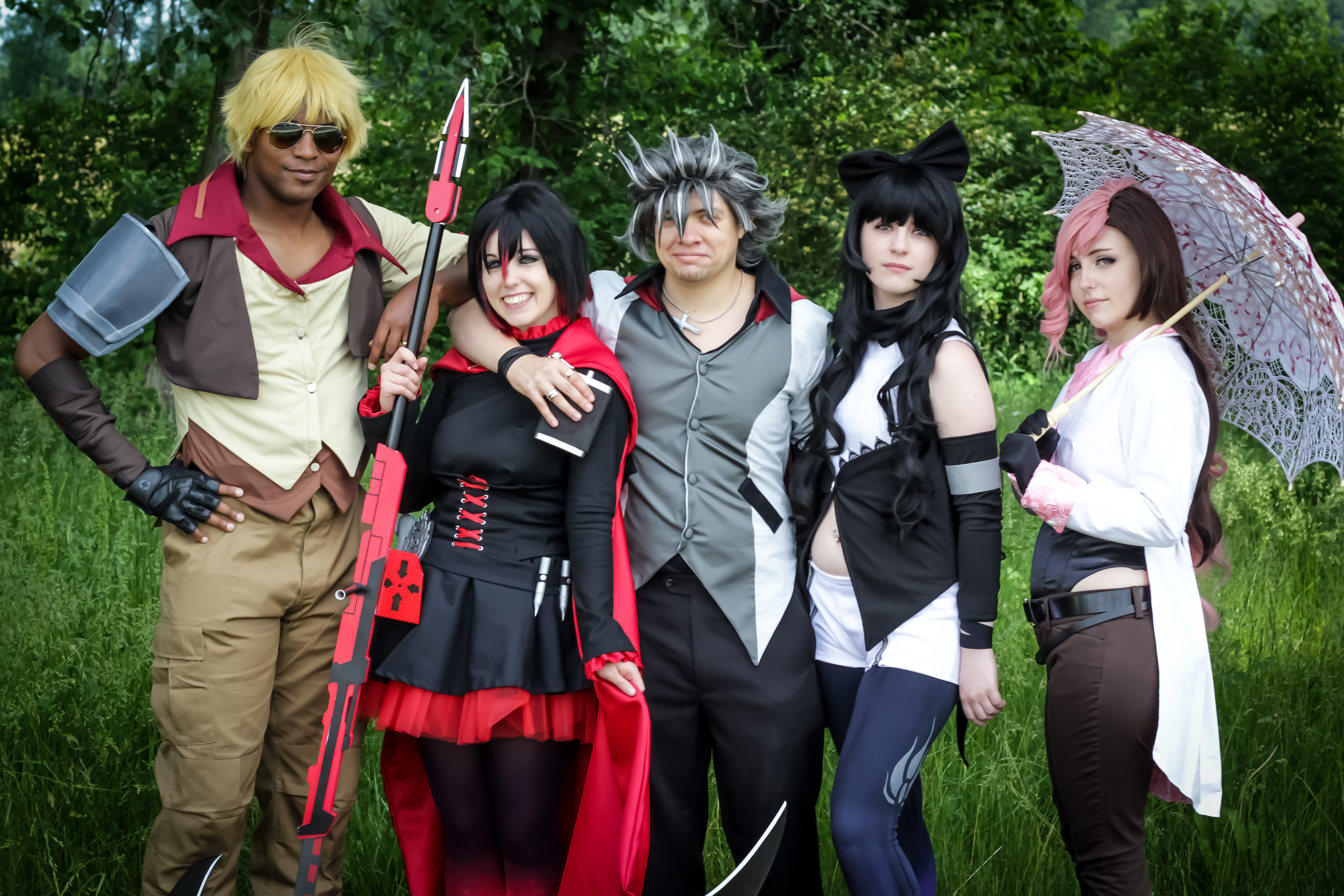 Ty Yang - Ryvine Kinneas. Qrow - Mulitverse Cosplay. Blake - Mochi Mochi Cosplay. Neo - Vizzie. Photography - Skydrop. Taken at Colossalcon 2016.