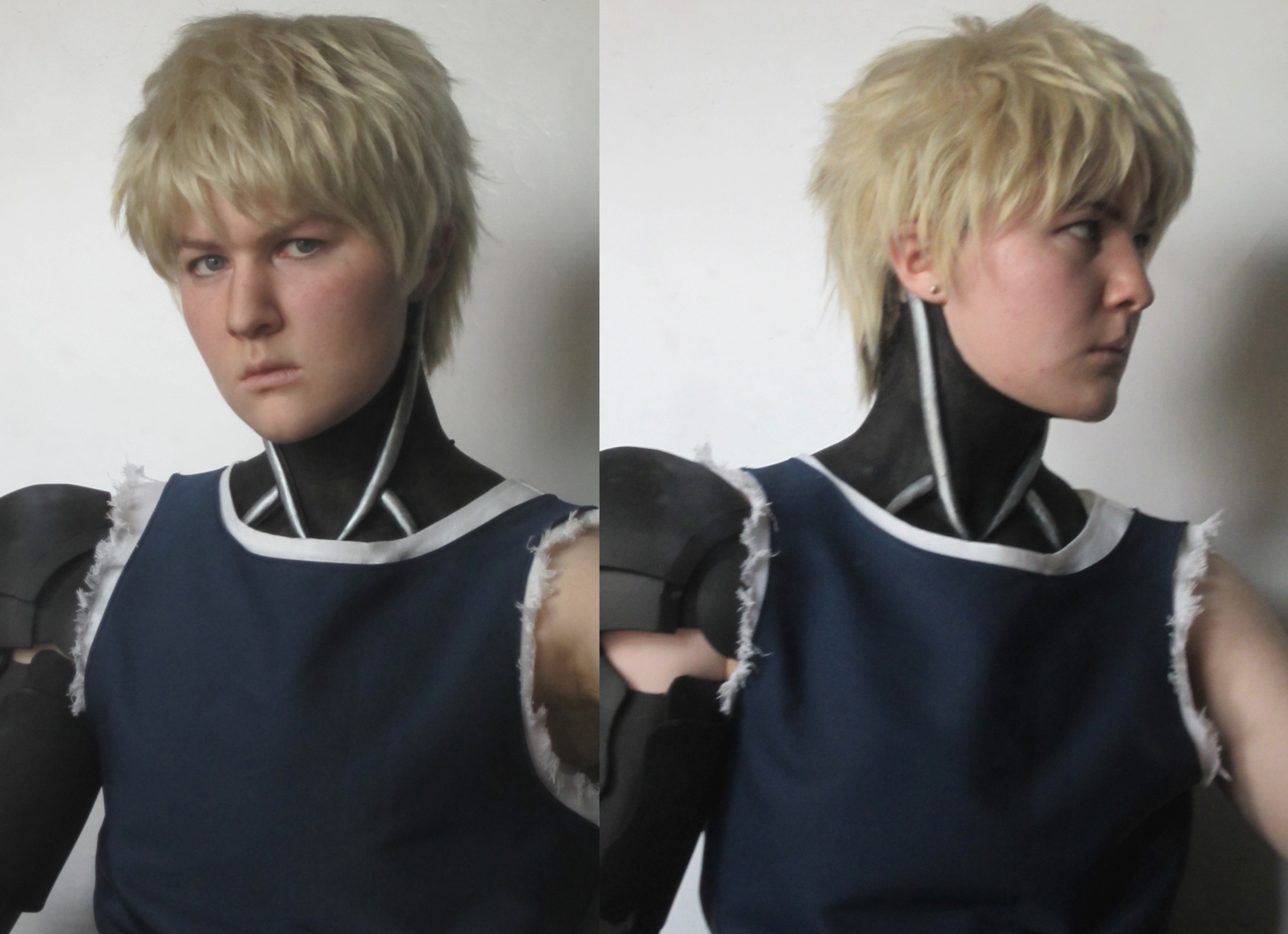 Wig is a Jett in Ash Blonde from Arda Wigs. I'm using latex prosthetics for the neck tendons and my neck is painted black with Mehron Paradise Makeup AQ. The hardest part of the shirt was tearing the edges of the armholes to look convincing.