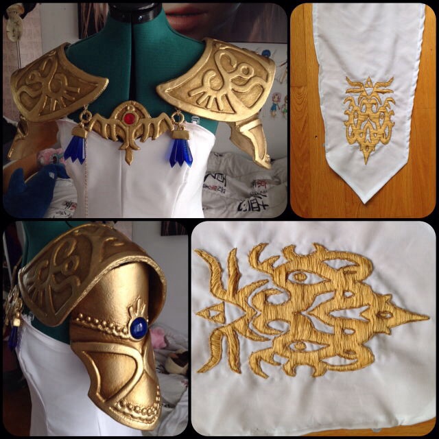 The pauldrons are done! I still need to figure out how to properly attach them so they don't do what they're doing on the pic, but for now I’m just happy to be done with them! And I also finished one of my over-glove thing! Took me about 12 hours to embroidery it and I still have the other one to do ;__; I wanted to embroidery the details on the dress too but I don’t have enough time left for it so I’ll just paint it :/