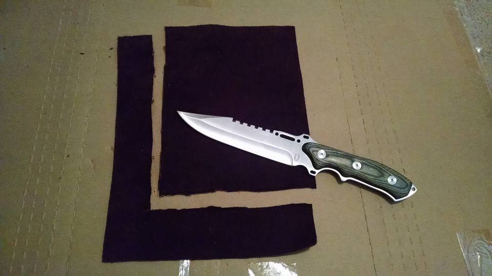 Cutting the pouch leather to size in the most "me" way possible(this is also the knife I use for Leon).